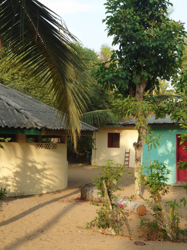 LIONSREST liegt nördlich des Fischerdorfes Mondoukou ca. 500 m vom Strand entfernt und ist eine Mischung aus kleinem Bauernhof und Tropengarten mit mehreren Wohn- und Nutzgebäuden, freilaufenden Hühnern, eigenem Gemüsegarten, Kokospalmen und Mangobäumen.